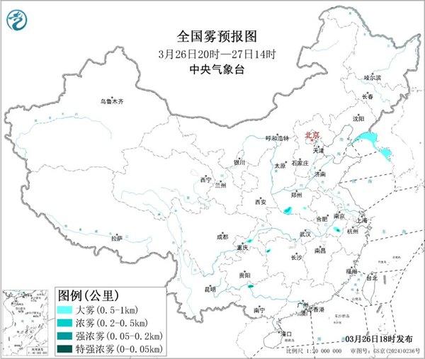 华夏天色网讯 中心气呼呼象台3月26日18时持续发表年夜雾黄色预警:  估计,26昼夜间,黄海北部战中东部海疆、辽东半岛东部沿岸海疆将有能睹度缺乏1千米的年夜雾。另外,26昼夜间至27日清早,河北北部、沉庆中部、安徽北部等天的片面区域有年夜雾,局天有能睹度缺乏500米的浓雾。  防备指北:  1、因为大陆能睹度较矮,驾驭职员应操纵快度,保证平安。  2、机场、下快马路、轮渡船埠采纳步伐,保证接通平安。  3、飞行、功课的舟舶应强化眺望,操纵航快,连结飞舞平安间隔,隆重驾驭,保证飞行平安。